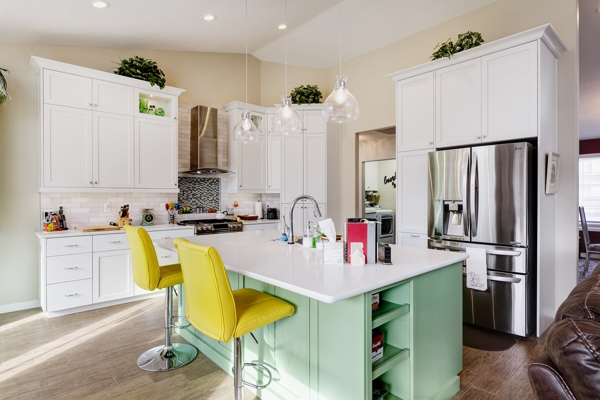We removed unnecessary walls that separated the kitchen, living, and family rooms to create a more open concept. We were also able to repurpose wasted hall closet space into much-needed kitchen pantry storage and an improved master bath layout. Finally, we constructed a small addition to the home to house a new, larger master suite closet.